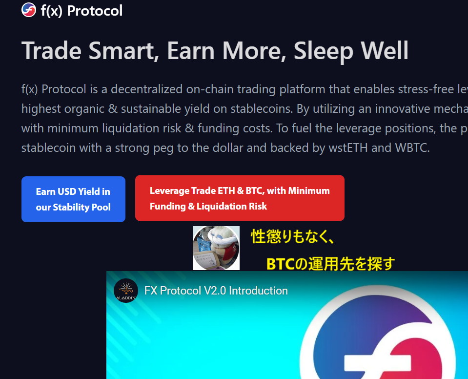 このプロジェクトはBTCをステーブルコイン(fxUSD)として運用しているようなものです。